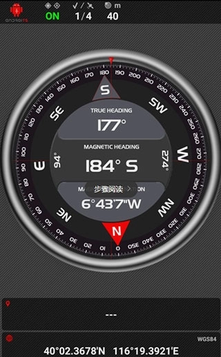 2、显示当前接收到的Gps卫星数量,信号强度,方位,显示你的Gps坐标,指南针功能;