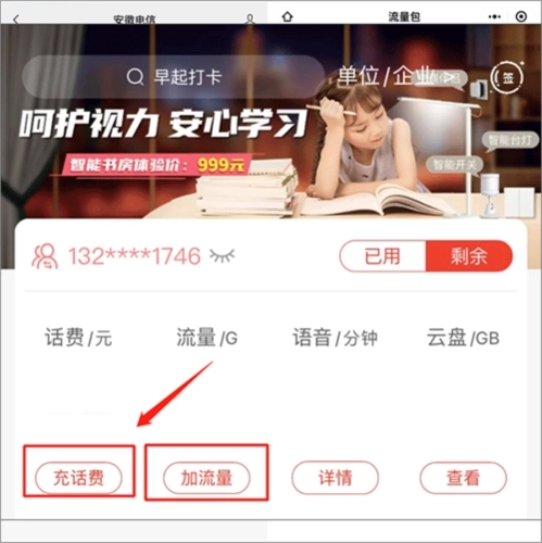 (2)打开“掌上10000”,点击“充话费”或“加流量”,各种流量包随时加,业务轻松办理。