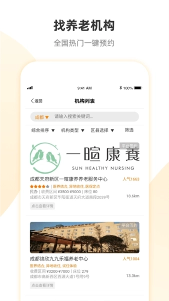 1、支持养老资源获取,帮助老人通过安心养老寻找合适的资源并享受服务。