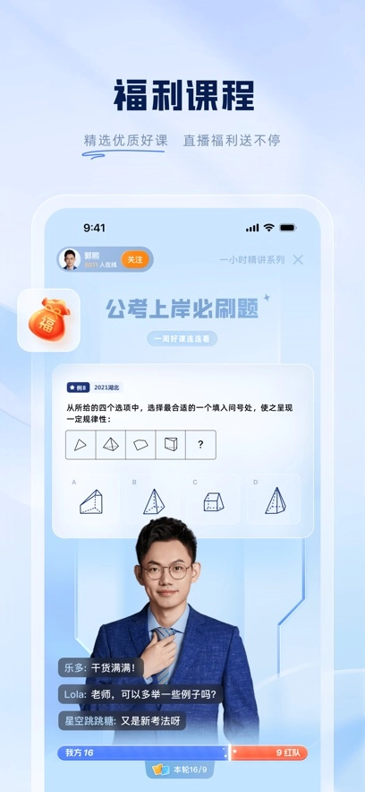 5.在线直播课:汇聚全国名师打造在线直播课程,直播过程中能实时参与互动,仿佛置身真实课堂场景,课程支持无限次回放以便反复学习。