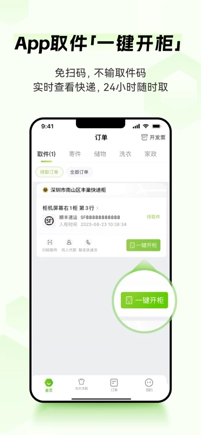 · 取件“一键开柜”:无需扫码、不用输入取件码,还能查看格口位置并直接开门取件