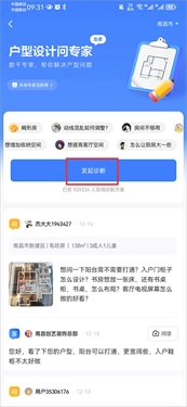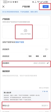 3、最后在户型诊断功能里点击上传户型图,接着把户型面积、具体需求、常驻人口数量以及装修预算这些信息填写完整,之后点击右上角的发布按钮就可以了。