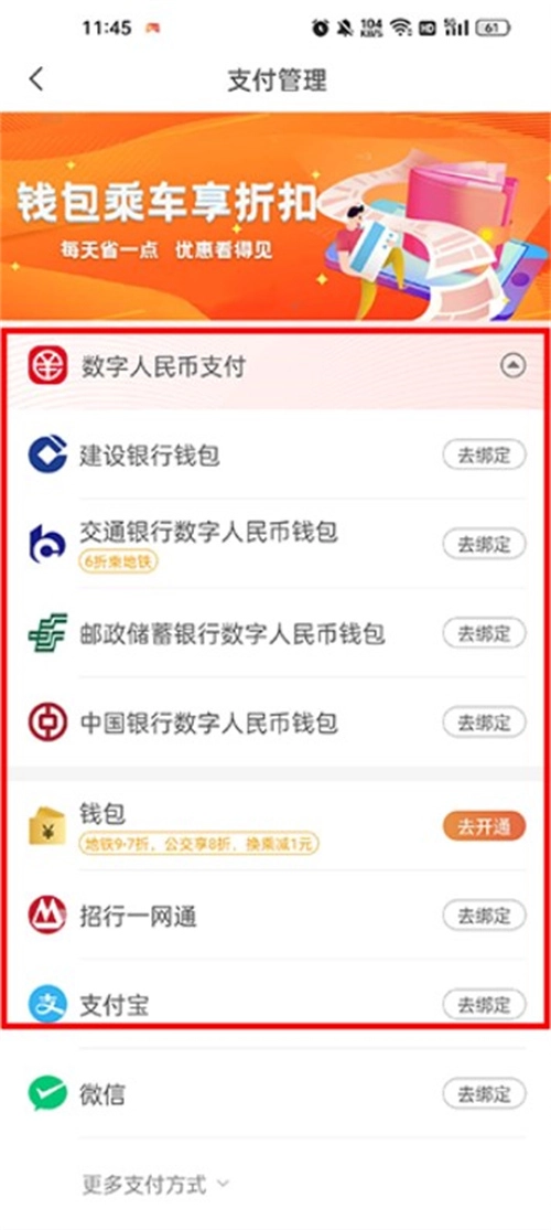 选择一个支付方式进行绑定,就可以用乘车码了。