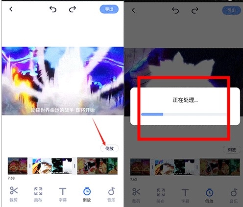 点击倒放按钮,等待处理。