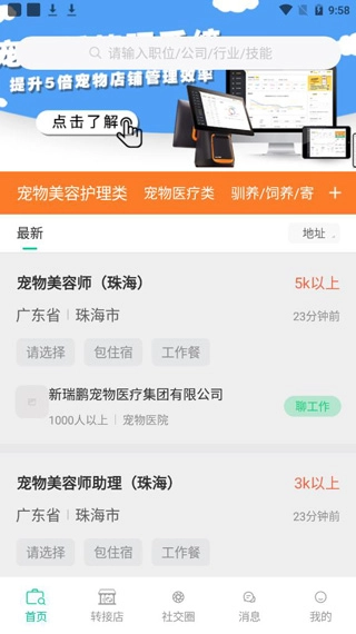如今不少家庭会选择饲养宠物来增添生活乐趣、陪伴自己,而宠物偶尔也会出现健康问题,需要专业的宠物医生来照料。同时,许多人也在寻找适合自己的职业方向,如果你对宠物行业感兴趣,不妨关注一下猎宠网——这是一款专注于宠物行业招聘与求职的平台。在这里,求职者可以浏览到丰富的行业岗位信息,所有职位详情都清晰呈现,帮助大家深入了解不同岗位的特点;遇到心仪的职位时,还能直接在线投递简历,让找工作的过程更加便捷高效。平台还支持实时查看简历的查阅状态,以及接收面试邀请的通知,实现“线上申请、线下面试”的模式,方便求职者实地了解企业环境和具体情况。感兴趣的朋友,欢迎来体验一下!