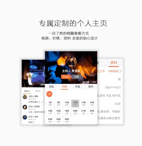 *档期展示分享:可以将自己的档期展示进行好友及朋友圈分享。