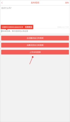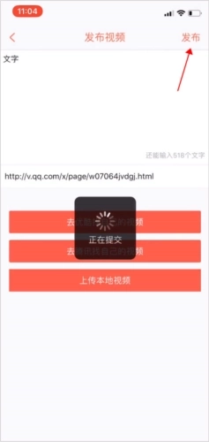 3、选择好视频,输入内容,点击发布即可上传。