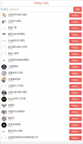 2、你可以在上方搜索或在下方选择你感兴趣的团队,点击右侧的“申请加入”,等待团队审核通过即可加入。