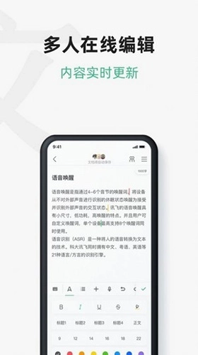 --支持多人编辑同一篇文档,即时显示所有变更,高效协作