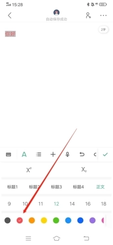 2、下拉页面,点击想要修改的颜色,这样我们就成功的改变选中文字的颜色了。