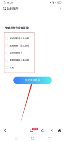 8、最后选择账号的注销原因,点击“提交注销申请”;