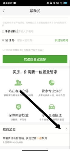 上边是提供房产经纪人,下面有一个加盟的选项,点击这个选项。