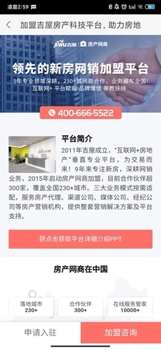 然后我们就可以看到成为吉屋房产经纪人的方法了,通过拔打电话或者直接平台申请入驻即可。