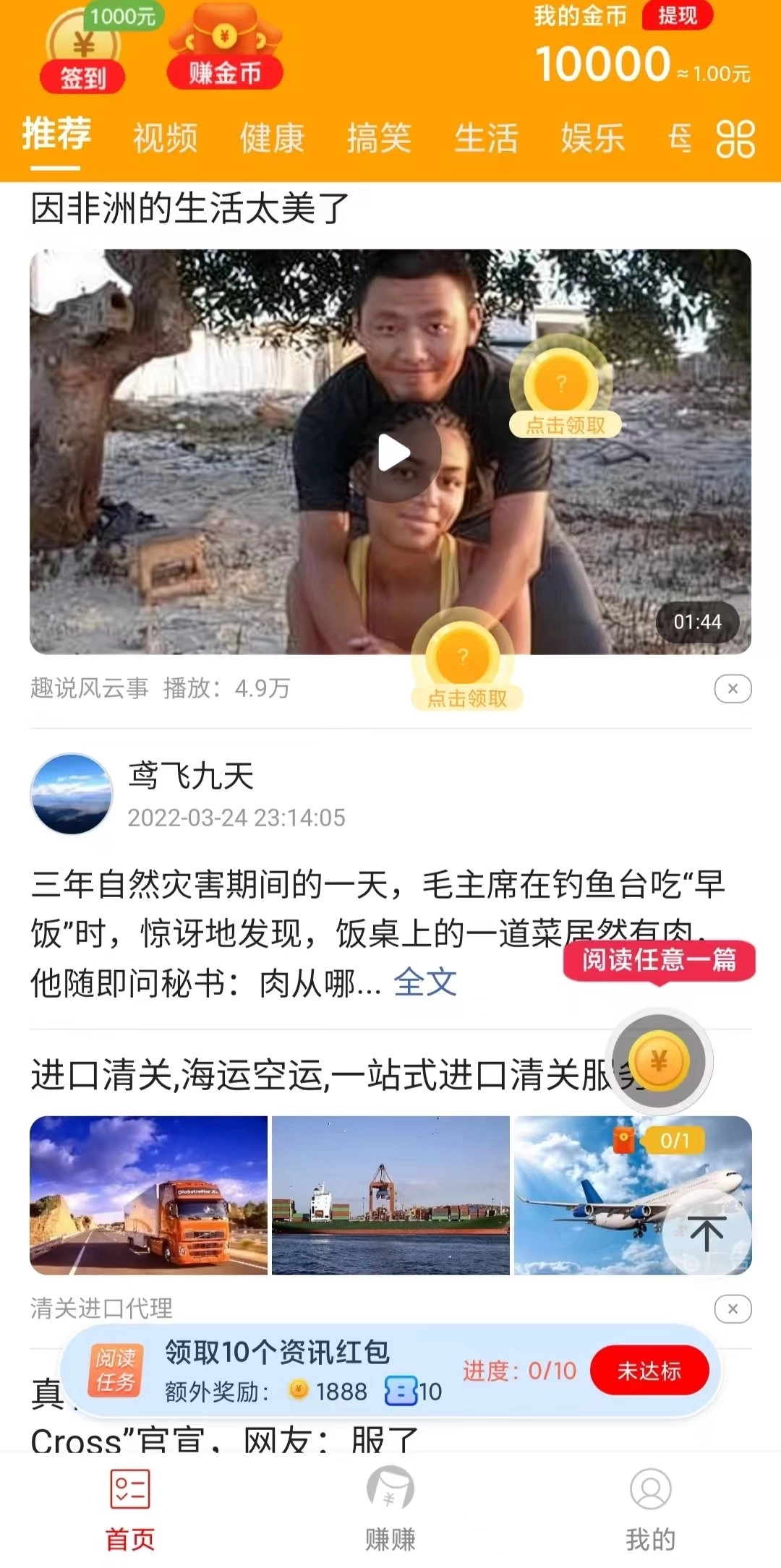 1、这是一个汇聚热门资讯的移动阅读平台,带来精彩内容与赚钱机会。