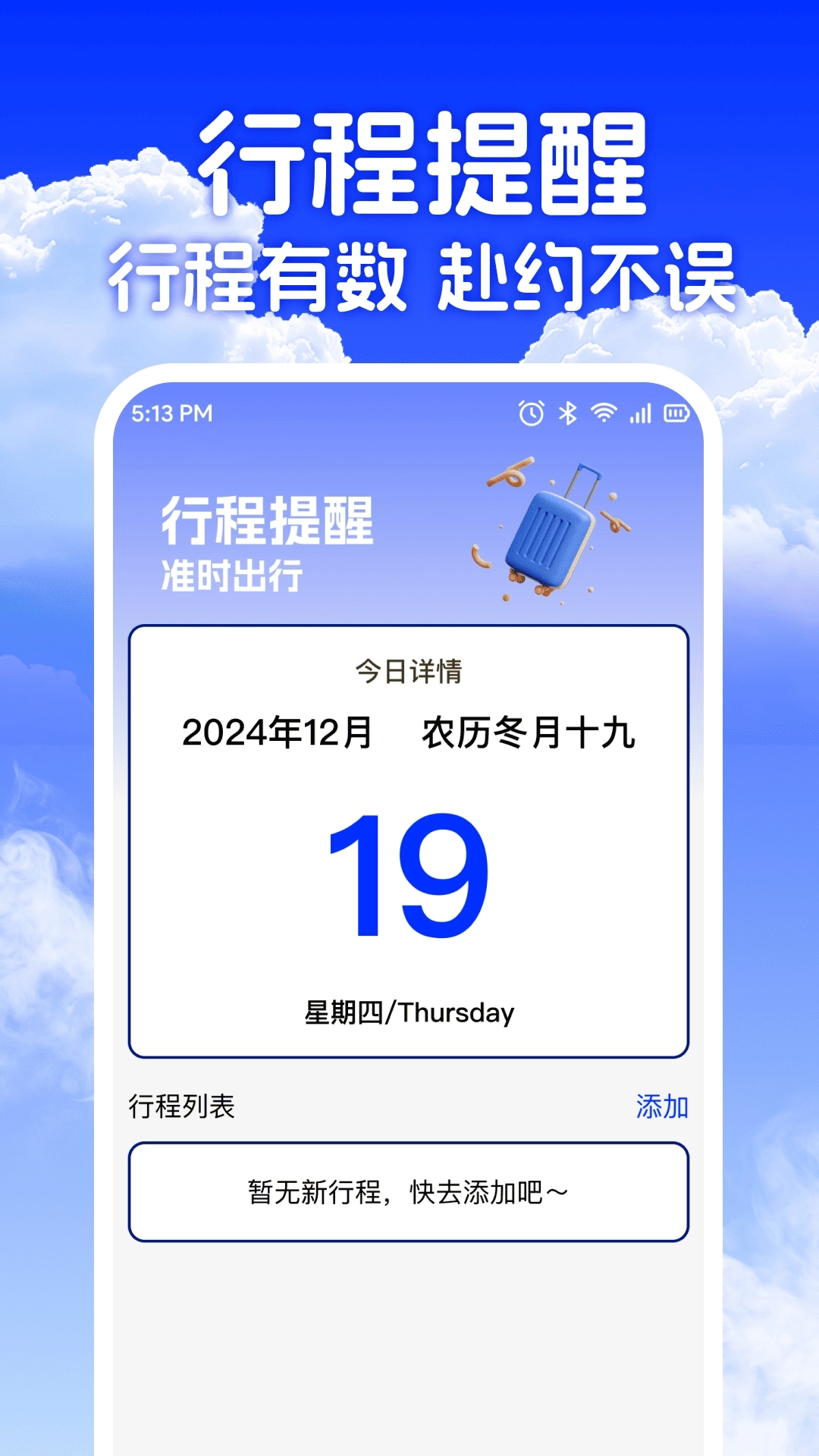 无论是行李规定还是登机流程,您都能轻松掌握,让旅途更加顺畅无忧。行程管理:助您便捷规划旅行安排。添加、编辑或删除行程详情,设置提醒事项,让您的每一次出行都井井有条。