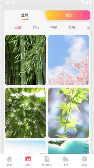 3、在壁纸页面,提供横屏、竖屏等多种风格的壁纸,用户可根据自身需求进行挑选。