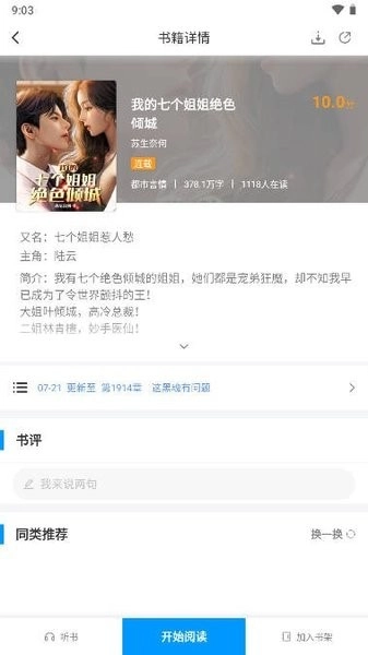 把自己钟爱的小说添加至个人书架,以便随时阅读。并且,此功能还具备同步阅读进度的特性,不管在何种设备上阅读,都能确保阅读记录始终一致。