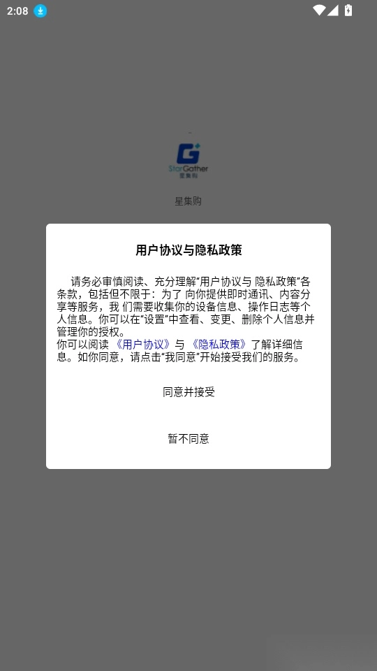 1. 启动软件后,阅读“用户协议与隐私政策”,点击“同意并接受”按钮进入应用