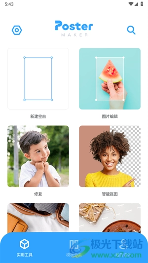 4、在实用工具页面创作专属于自己的海报模版,对于图片编辑、修复、添加水印等等操作。