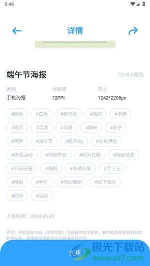 一键对于自己创作的海报进行导出操作,可以自由选择导出的格式、画质等等,方便进行打印。