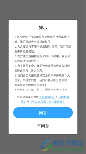 1、在本站中软件并打开,点击"同意"。