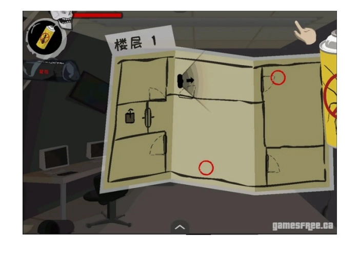 游戏内设有地图功能,点击后会呈现整栋办公楼的布局,涵盖各楼层的房间分布情况。玩家可在地图上选定目标位置进行点击,角色便会自行移动至该地点。这一功能在探索大区域时十分好用,能让玩家快速在不同楼层与房间间穿梭,既节省时间又能防止在复杂环境中迷失方向。
