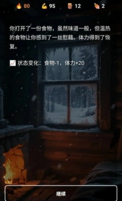 雪山求生游戏是一款以生存为主题的冒险文字游戏,其背景设定在暴风雪猛烈侵袭的偏远雪山区域。
