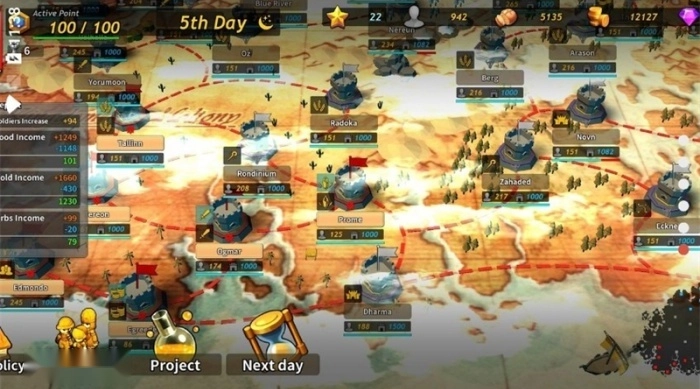 进攻周边实力较弱的势力,能够获得金币、粮食、科技点这类重要资源,不仅可以加快自身的发展速度,还能降低敌方的实力。