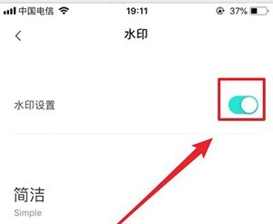 5、点击后,用户能够看到水印状态为开启。此时,点击后方开关将其关闭,就能取消水印。