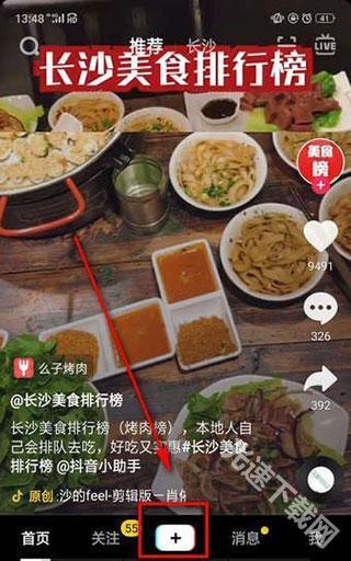 1. 开启【抖音】应用,轻点屏幕中间的【+】按钮。