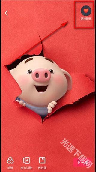 6、在右上方,我们能够看到一个标有“更好配乐”的图标,点击该图标上的【更换配乐】按钮。