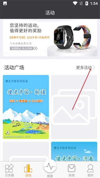 2、在活动页面,点击【更多活动】按钮,即可进入活动广场页面。