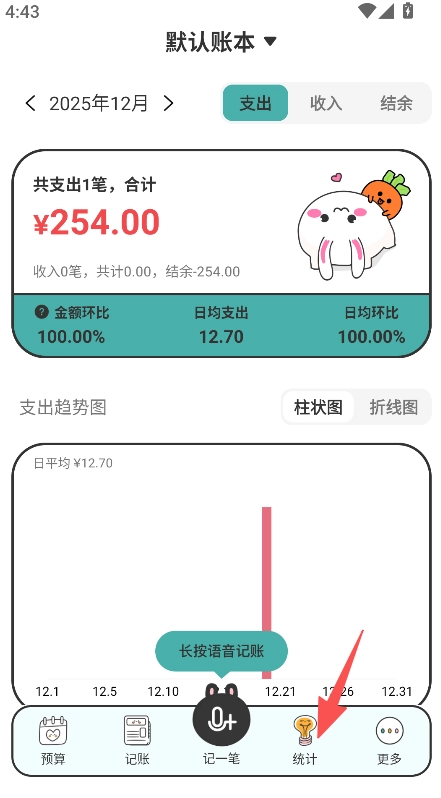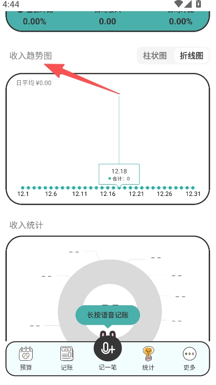 2、在统计页面切换月度年度查看,选择趋势图的柱状图或折线图类型。