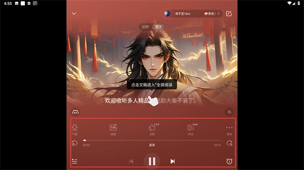 3、该还提供了个性化推荐功能,根据用户的收听历史和行为,为用户推荐适合的音频内容。