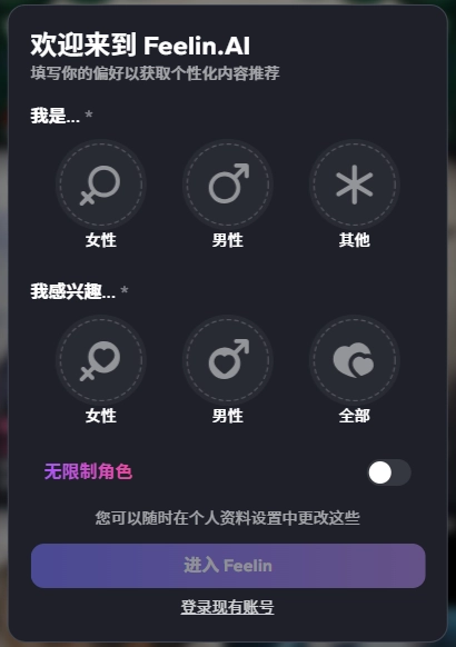1、Feelin AI正版软件打造了内容多元的虚拟角色社区,用户能够自主挑选并和各类预设的智能角色开展对话互动。