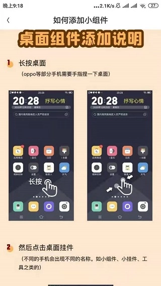 6.那么如何在桌面添加自己的拉屎小组件呢,首先,长按桌面,如果是oppo手机需要手指捏一下桌面才可以。