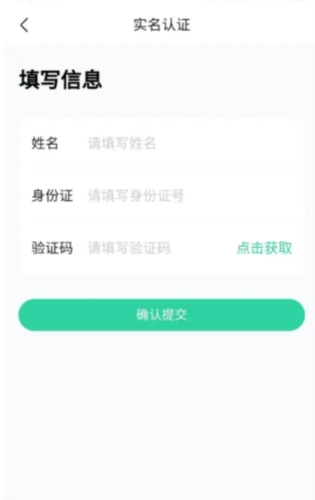 3、在实名认证页面中,输入姓名,身份证号码,完成手机验证码校验,然后点击最下方的确认提交按钮即可。