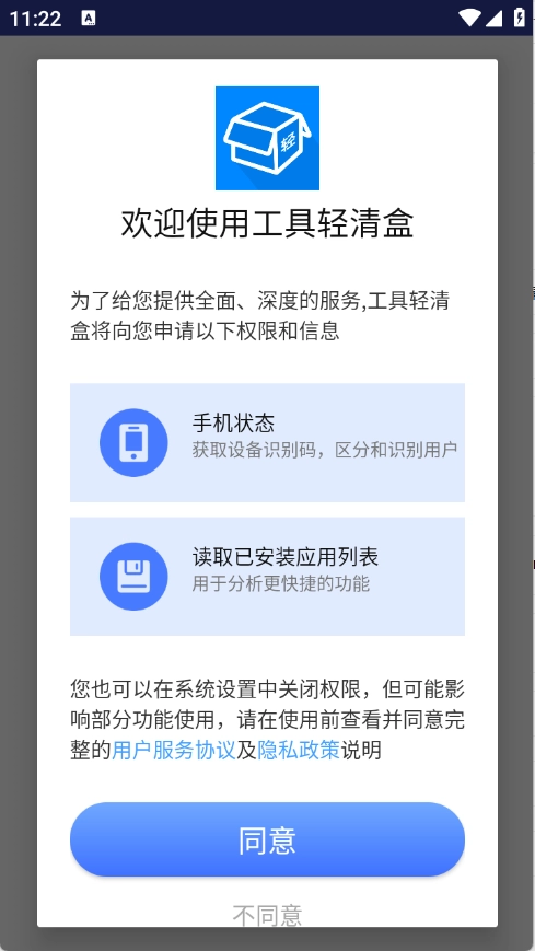 1、用户在本站工具轻清盒,点击同意。