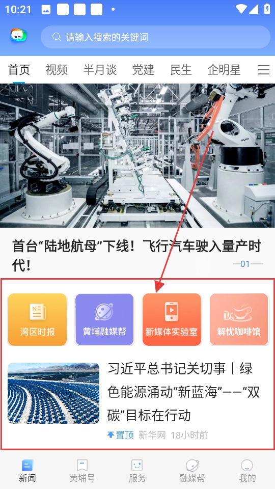 在软件首页,点击湾区时报等板块,即可进入对应板块查看相关内容。