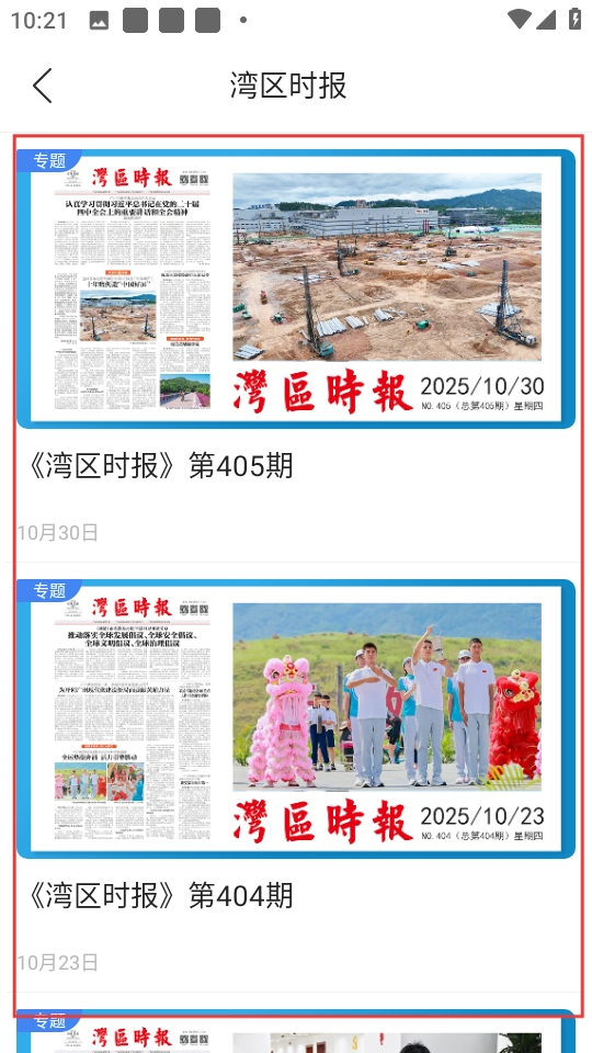 进入湾区时报板块后,您可以浏览该板块下不同期数的湾区时报内容,从中查看自己感兴趣的报道。