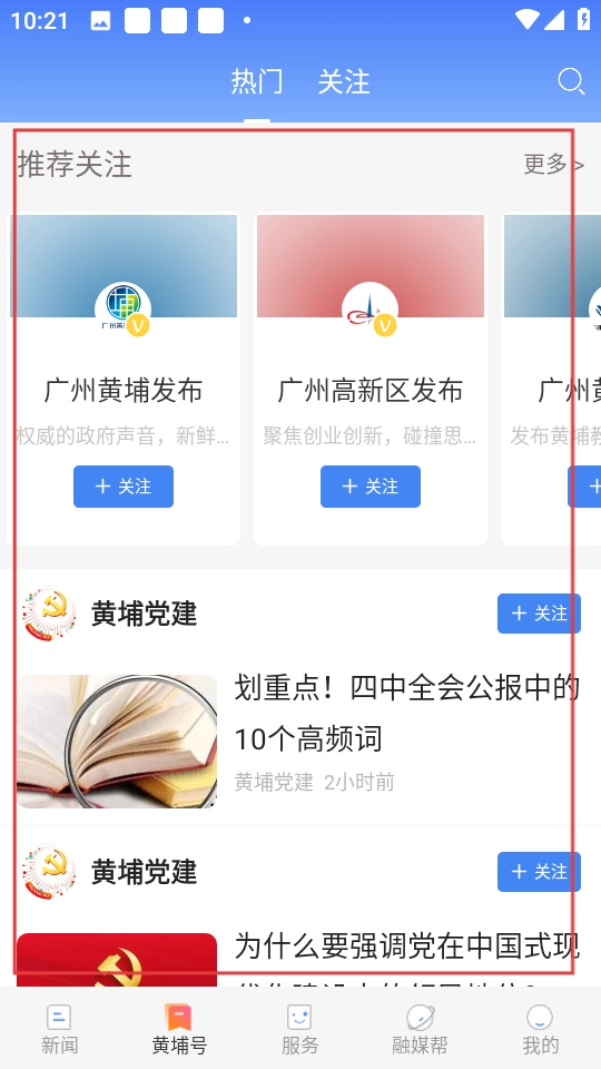 2、整合黄埔区主流新媒体矩阵,筛选政务、企业等多元内容,提供一键关注订阅功能,助力用户便捷获取各类动态。