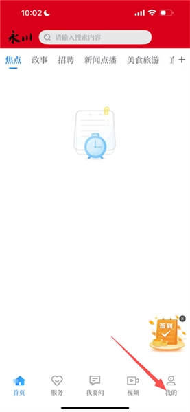 1、在永川首页,点击底部我的,进入个人页面。