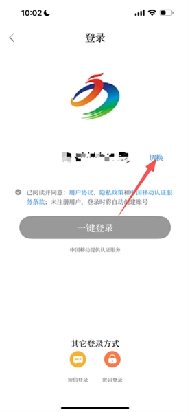 3、在登录页面,点击切换,选择短信登录方式。