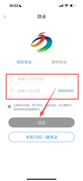 4、输入手机号对应的验证码,随后点击登录按钮,从而完成登录流程。