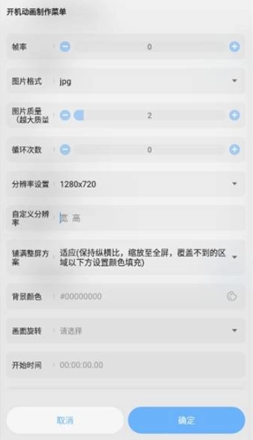 5、根据需求调整开机动画的帧率、分辨率等参数。