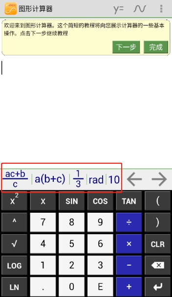 1、打开后,能看到一个类似计算器的屏幕,点击下方红色框里的计算式,就会出现简化版本。