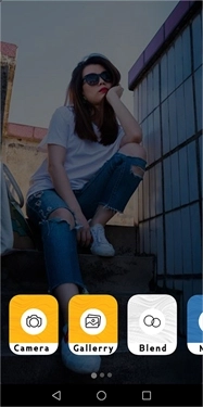 1、打开软件后,可点击【camera】自行拍摄一张图片,也可点击【Gallerry】从用户手机里选择需要更换的图片