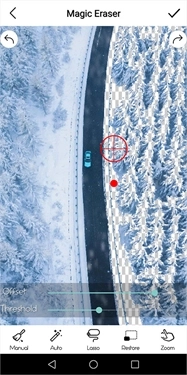 2、选好图片后,用户可点击底部工具栏里的【Auto】(也就是魔棒工具),把相关参数设置妥当,就能在图片上进行涂抹操作了。