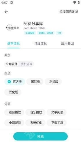 3、挑选需发布的类型、渠道、分区,以及要分享的网盘链接。