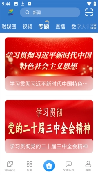 1、进入首页后,我们可以看到一系列布局合理的板块,涵盖了政声、看盐边、融媒圈等内容。